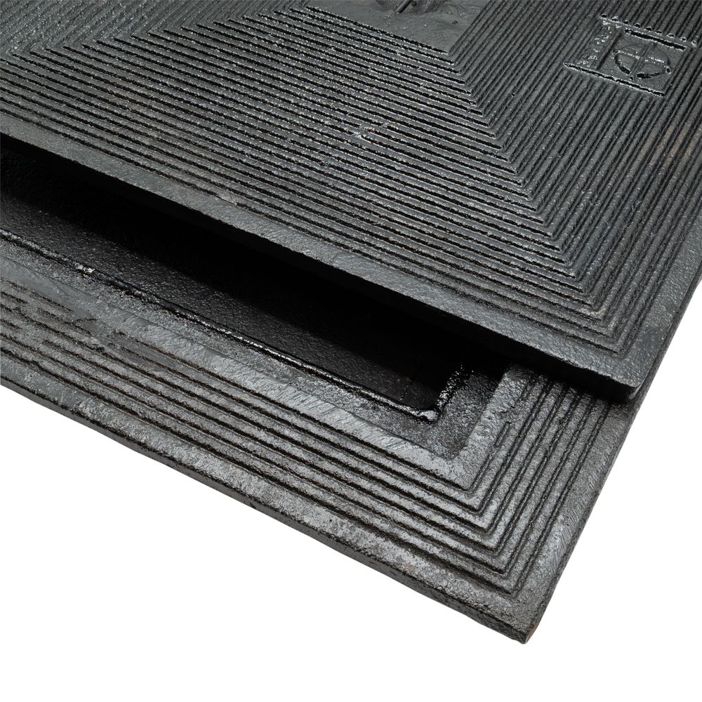 Couvercle en fonte, fermeture des deux couvercles par rainure.
