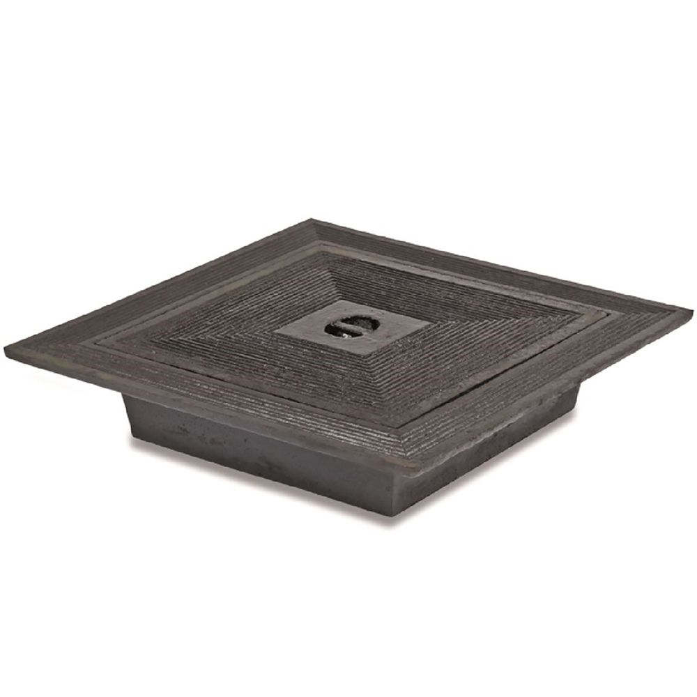 Gietijzeren deksel, sluiting d.m.v. tand- en groef voor beide deksels. Voorzien van centrale uitlichtkom. |